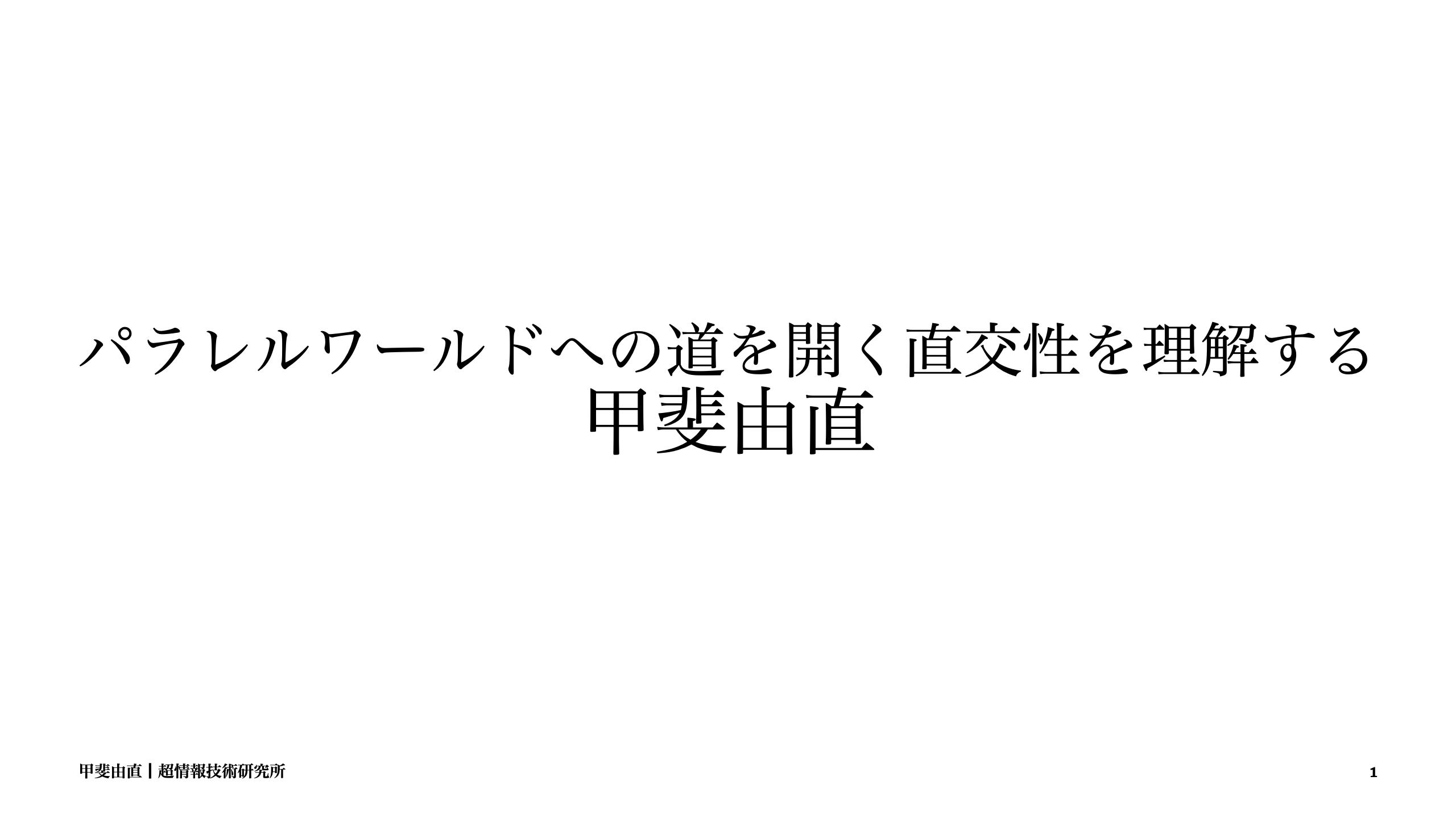 突然ですけれども、パラレルワールド的な感覚と直交性の話もしていきたいと思います